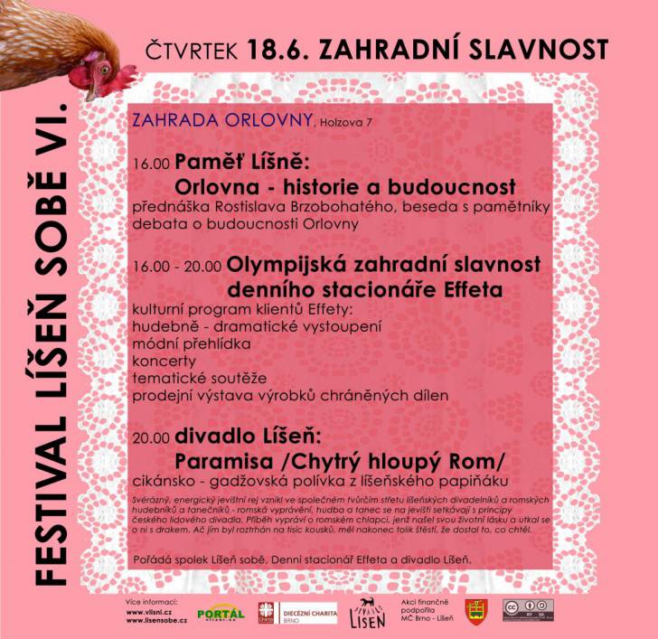 Zahradní slavnost Denního stacionáře Effeta. Paměť Líšně: ORLOVNA HISTORIE A BUDOUCNOST