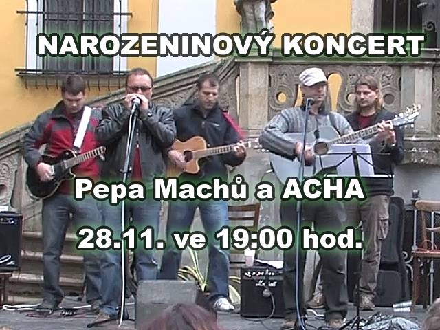 Pepa Machů a ACHA: Narozeninový koncert. Líšeňská kapela ACHA se svým nehrajícím kapelníkem Josefem Machů slaví první narozeniny! Jak jinak, než muzikou. Přijďte je podpořit.