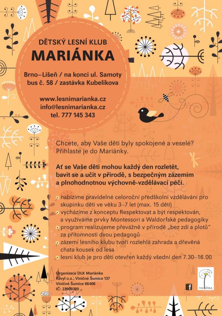 Zázemí Dětského lesního klubu Mariánka se nachází v zahradě s chatkou, na konci ulice Samoty v Brně-Líšni, asi 8 min. pěšky od zastávky Kubelíkova autobusu č. 58.