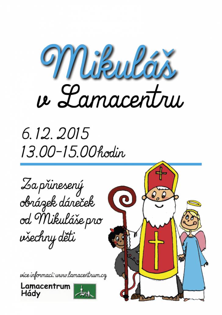 Náš lamák Čert, společně s Mikulášem a andělem, budou nadělovat všem hodným dětem, které přinesou vlastnoručně namalovaný obrázek, případně přednesou básničku či zazpívají písničku.
