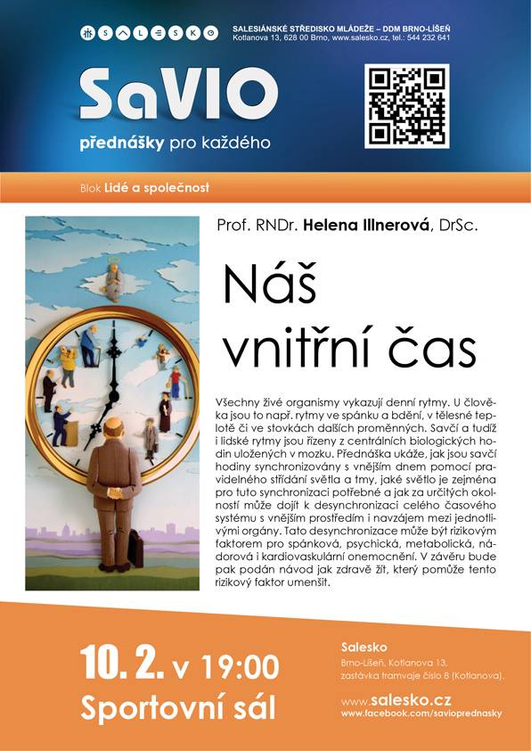 Přednáška ukáže, jak jsou savčí hodiny synchronizovány s vnějším dnem pomocí pravidelného střídání světla a tmy, jaké světlo je zejména pro tuto synchronizaci potřebné a jak za určitých okolností může dojít k desynchronizaci celého časového systému s vnějším prostředím i navzájem mezi jednotlivými orgány. Tato desynchronizace může být rizikovým faktorem pro spánková, psychická, metabolická, nádorová i kardiovaskulární onemocnění. V závěru bude pak podán návod jak zdravě žít, který pomůže tento rizikový faktor umenšit.
