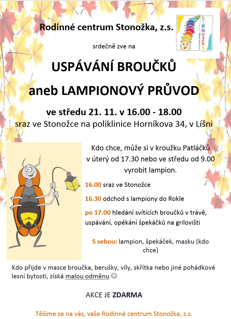 V měsíci listopadu a na začátku prosince budeme pořádat Tvořivé dílničky pro dědy a babičky (výroba misek z LP desek, vánoční dekorace), Cestovatelský čtvrtek - Banát, Uspávání broučků, Výrobu adventního věnce, Mikulášské disco, Vánoční besídku...