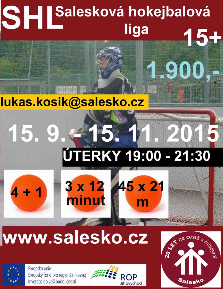Salesková hokejbalová liga je určena pro hráče starší 15 let. Bude se hrát na hokejbalovém asfaltovém hřišti 45 x 21 m. 3 x 12 min + 2 a 2 minuty pauza. Povinná výstroj jsou rukavice a hokejka, další výstroj je doporučená. Brankář má povinnou kompletní výstroj (bude možné zapůjčit za poplatek na Salesku). Maximální počet hráčů v týmu je 12. Hraje se 4 + 1. Hracím dnem jsou úterky 19:00 – 21:30. Startovné 1.900,- Kč za tým. Hraje se o pohár, věcné ceny a každý tým obdrží diplom s fotkou týmu. Herní systém bude upřesněn podle počtu přihlášených týmů. Přihlašujte se do 9. září na mail: lukas.kosik@salesko.cz. Do přihlášky uveďte název týmů a jména hráčů. U kapitánů týmu uveďte i datum narození, kontakt a adresu trvalého bydliště. Pro hráče jsou k dispozici šatny včetně sprch. Na uvedenou adresu se mohou hlásit i jednotlivci bez svého týmu.